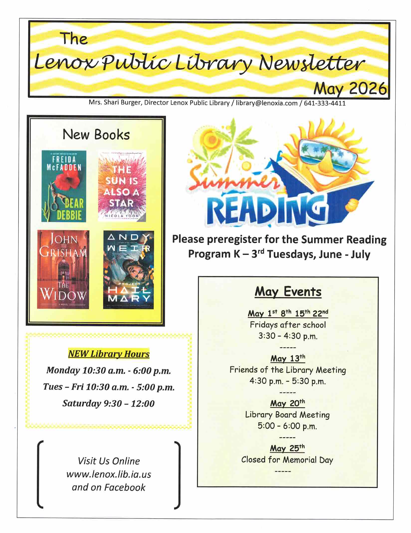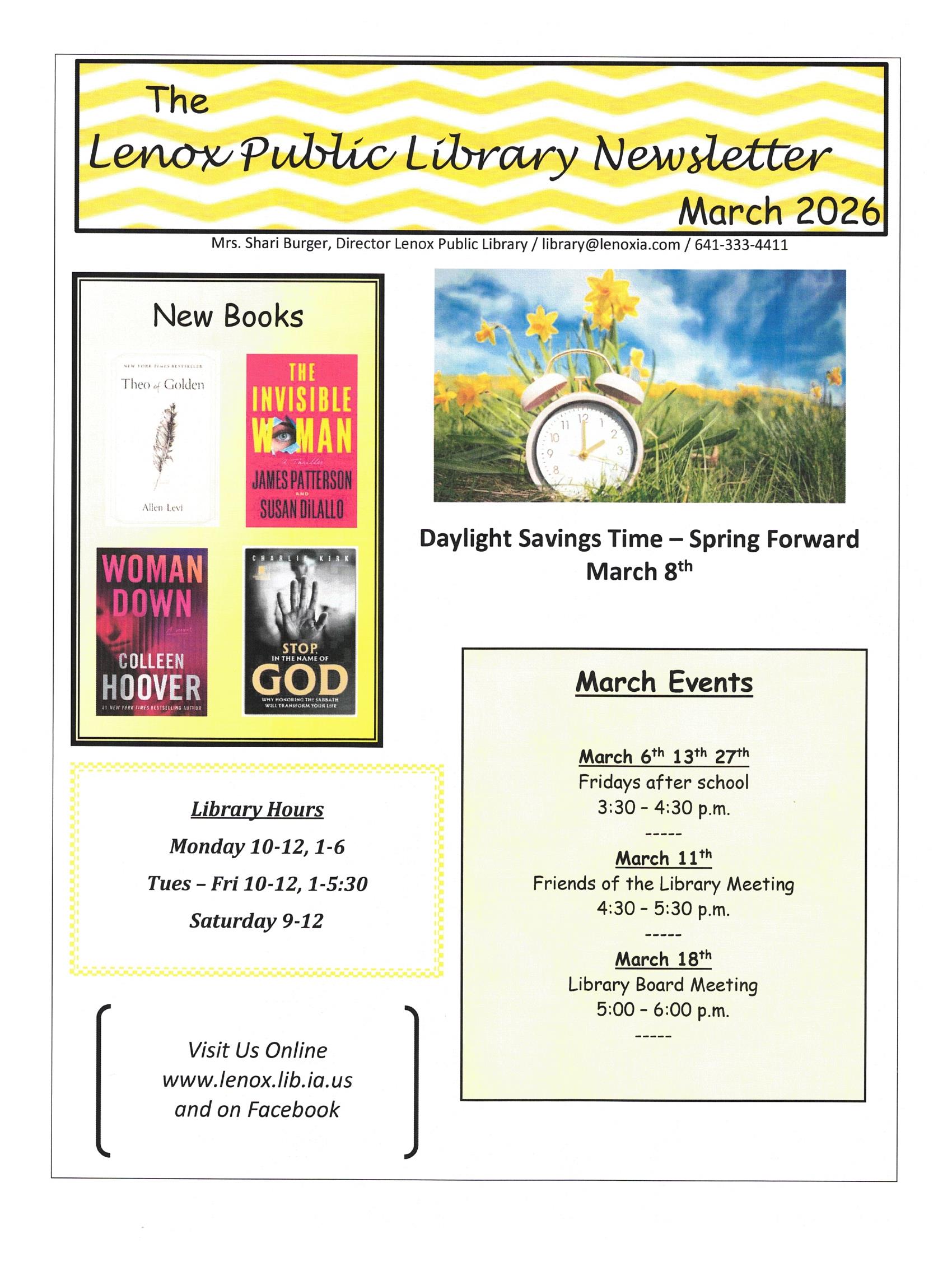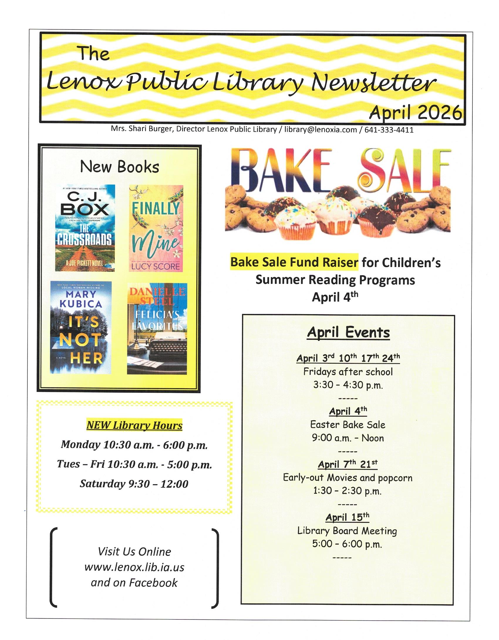 Welcome to the Lenox Public Library. The library is your one stop source for all of your informational needs. We have a large selection of books, and electronic resources available to be used by our library card holders.
